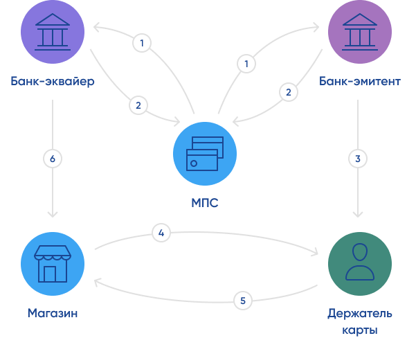Магазин – торговая точка предприятия – юридического лица/индивидуального предпринимателя. Держатель карты – физическое лицо, оплачивающее товары в торговых точках по банковским картам (покупатель). Банк-эмитент – Банк, который осуществляет выпуск банковских карт. Банк, в котором открыт текущий счет физического лица (покупателя). Международная платежная система (МПС) - осуществляет информационное и технологическое взаимодействие между участниками расчётов.