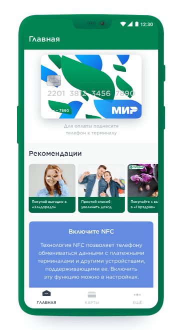 Реквизиты карты «Мир» не хранятся в смартфоне и не раскрываются при совершении платежей. Вместо номера карты используется цифровой код-токен — то есть, особым образом генерируемый код.