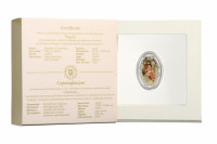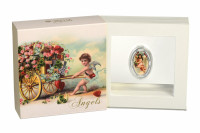 Серебряная монета «Ангел здоровья» серии «Ангелы» имеет форму медальона и привлекает ярким дизайном, который создается с использованием цветной цифровой печати.
