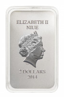 Монета-икона имеет прямоугольную форму, выполнена из серебра 999 пробы, ее вес составляет 31,07 г. Выпущена Ниуэ в 2014 году номиналом 2 доллара, качество чеканки «ПРУФ».