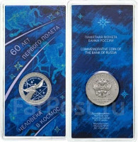 Космос. 60-летие первого полета человека в космос. Памятная монета. Блистер.