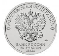 На лицевой стороне монеты расположено рельефное изображение Государственного герба Российской Федерации, над ним вдоль канта — надпись полукругом: «РОССИЙСКАЯ ФЕДЕРАЦИЯ», обрамленная с обеих сторон сдвоенными ромбами, справа — товарный знак Московского монетного двора, внизу под гербом в центре в три строки — надпись: «БАНК РОССИИ», номинал монет: «25 РУБЛЕЙ», дата: «2022 г.».