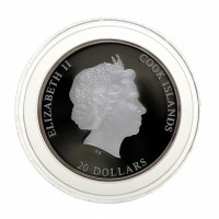 Монета выпущена в 2017 году, выполнена из серебра 999 пробы, ее вес – 93,21 г, номинал монеты составляет 20 новозеландских долларов (страна-эмитент – острова Кука), качество чеканки – «ПРУФ».