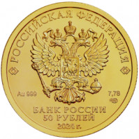 Георгий Победоносец. Золотая инвестиционная монета. 50 рублей. 2024 г.