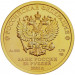 На реверсе представлен сюжет картины русского художника А.В. Бакланова, где всадник Георгий Победоносец убивает копьем страшного змия. Изображение этого святого использовалось на Руси в качестве элемента государственной символики – на печатях, гербах, монетах, начиная с XIII века. На аверсе – рельефное изображение государственного герба Российской Федерации.