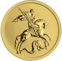 Монета «Георгий Победоносец» выполнена из золота 999 пробы, массой 7,78 г, номинал составляет 50 рублей, качество чеканки – «АЦ».