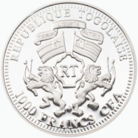 На аверсе монеты изображен герб страны эмитента-Того, надпись «REPUBLIQUE TOGOLAISE» и номинальная стоимость.