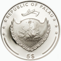 На аверсе нанесено название страны –эмитента «REPUBLIC OF PALAU» и номинальная стоимость.