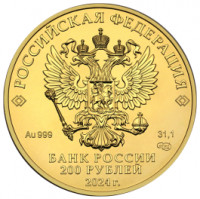 Георгий Победоносец. Золотая инвестиционная монета. 200 рублей. 2024 г.