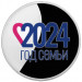 На монете цветное изображение официального логотипа «Год семьи 2024» на фоне элемента паттерна Года семьи, выполненного в технике лазерного матирования.