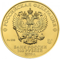 Георгий Победоносец. Золотая инвестиционная монета. 200 рублей. 2025 г