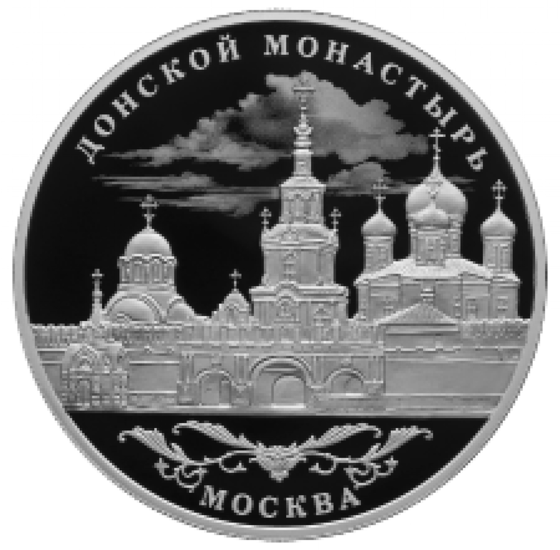 На монете рельефное изображение Донского монастыря на фоне изображения облаков, выполненных в технологии лазерного матирования; по окружности – надписи: вверху – «ДОНСКОЙ МОНАСТЫРЬ», внизу, под рельефным орнаментом, – «МОСКВА».