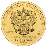 Георгий Победоносец. Золотая инвестиционная монета. 50 рублей. 2026 г.