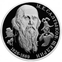 Выдающиеся личности России. Писатель М.Е. Салтыков-Щедрин, к 200-летию со дня рождения. Серебряная монета.