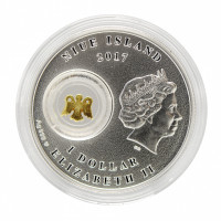 Монета выпущена в 2017 году, выполнена из серебра 999 пробы, ее вес – 14,13 г, номинал монеты составляет 1 доллар, качество чеканки – «ПРУФ».