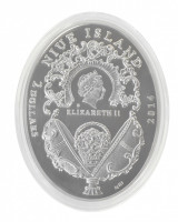 Монета выпущена в 2014 году, выполнена из серебра 925 пробы, ее вес – 52,32 г, номинал монеты составляет 2 доллара (страна-эмитент – Ниуэ), качество чеканки – «ПРУФ».