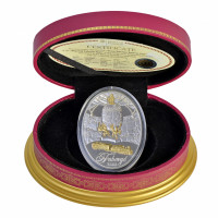 Серебряная монета «Транссибирская магистраль» эксклюзивной серии «Императорские яйца Фаберже», посвященной произведениям искусства выдающегося ювелира Петера Карла Фаберже.