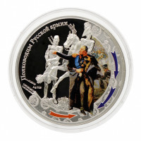 На реверсе находятся цветные изображения российских войск 1812 года.