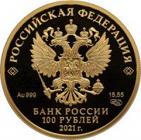 На аверсе изображен Государственный герб РФ, имеются надписи "Российская Федерация", "Банк России", а также указан год выпуска, вес монеты, сплав металла и проба, а также номинал.