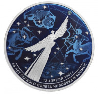 Космос. 60-летие первого полета человека в космос. Серебряная монета. Специсполнение.