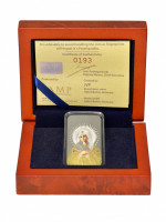 Монета-икона имеет прямоугольную форму, выполнена из серебра 999 пробы, ее вес составляет 31,07 г. Выпущена Фиджи в 2012 году, номиналом 2 доллара, качество чеканки – «ПРУФ».