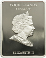 На аверсе изображён барельеф королевы Елизаветы II, по верху нанесено название страны –эмитента ОСТРОВА КУКА и номинальная стоимость.