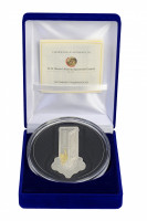 Монета продается в подарочном футляре с сертификатом подлинности внутри.